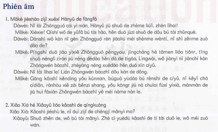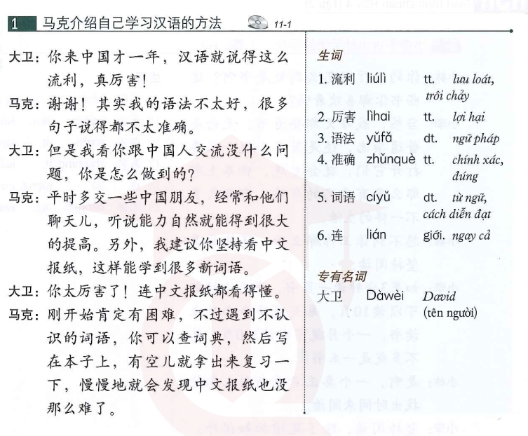 课文 1:马克介绍自己学习汉语的方法 (Mark giới thiệu cách học tiếng Trung của mình)