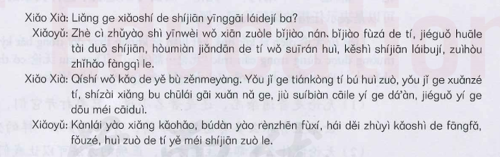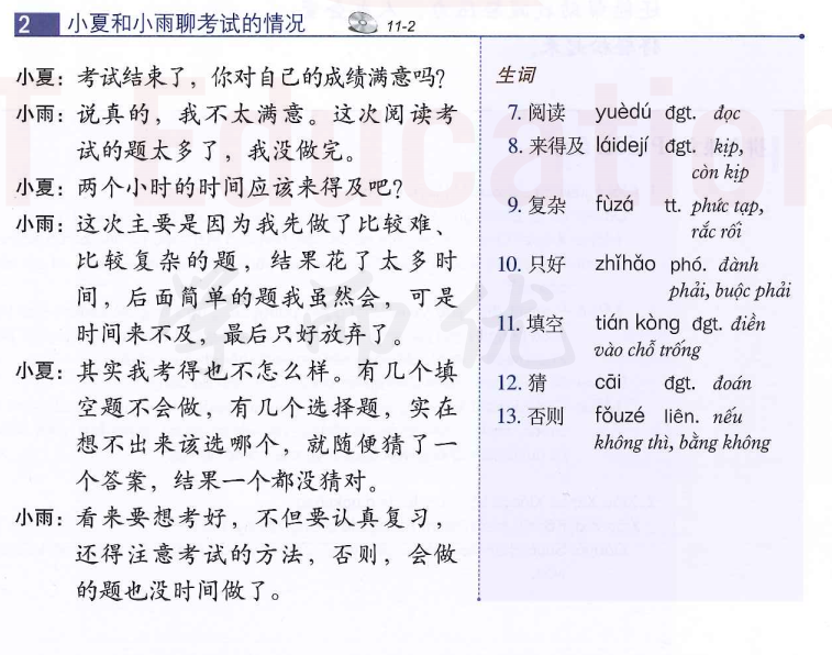 课文 2:小夏和小雨聊考试的情况 (Tiểu Hạ và Tiểu Vũ trò chuyện về tình hình kỳ thi)