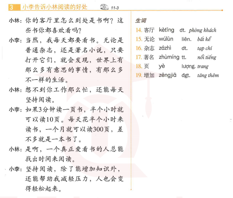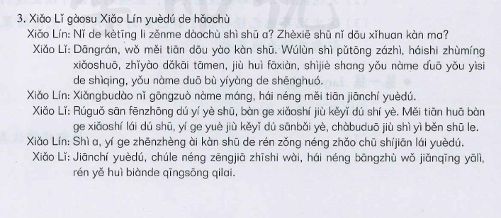 课文 3:小李告诉小林阅读的好处 (Tiểu Lý nói cho Tiểu Lâm về lợi ích của việc đọc sách)