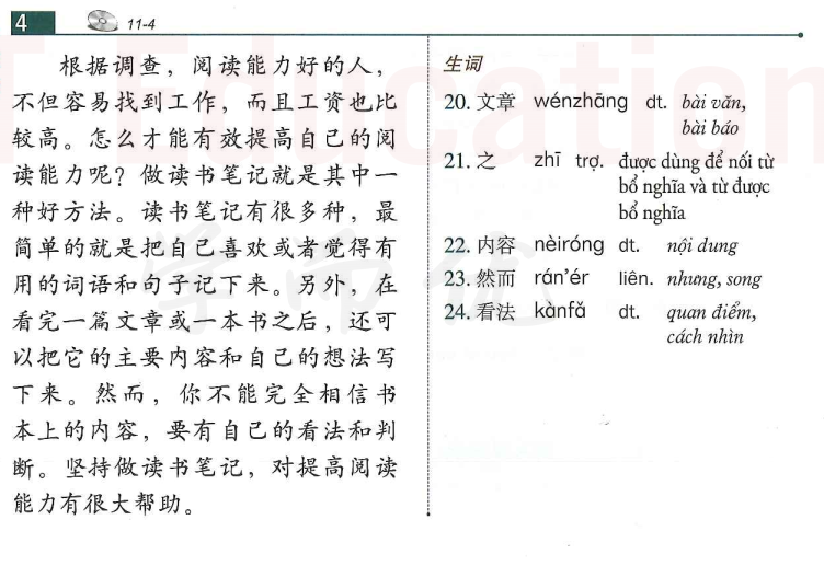 Bài 11, sách HSK 4, sách giáo khoa tiêu chuẩn.