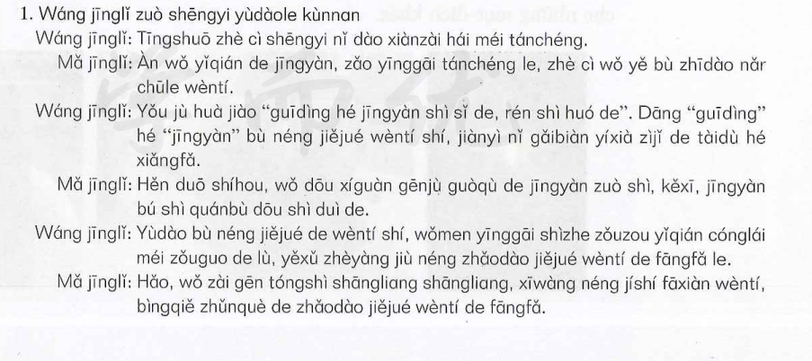 课文 1:王经理做生意遇到了困难 (Giám đốc Vương kinh doanh gặp khó khăn)