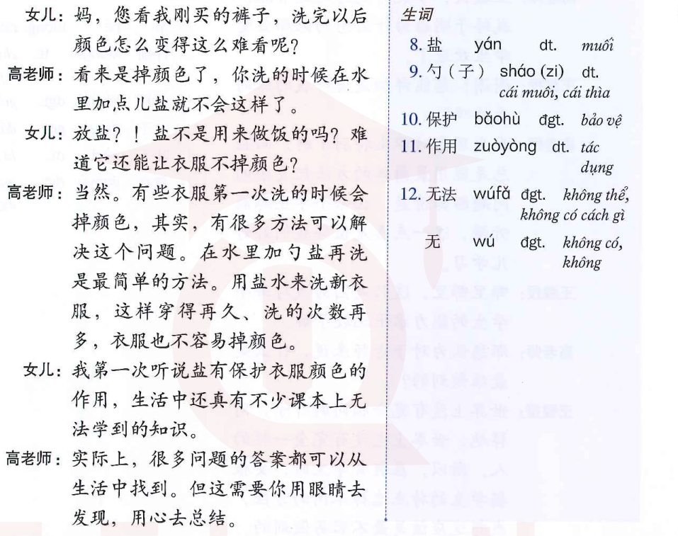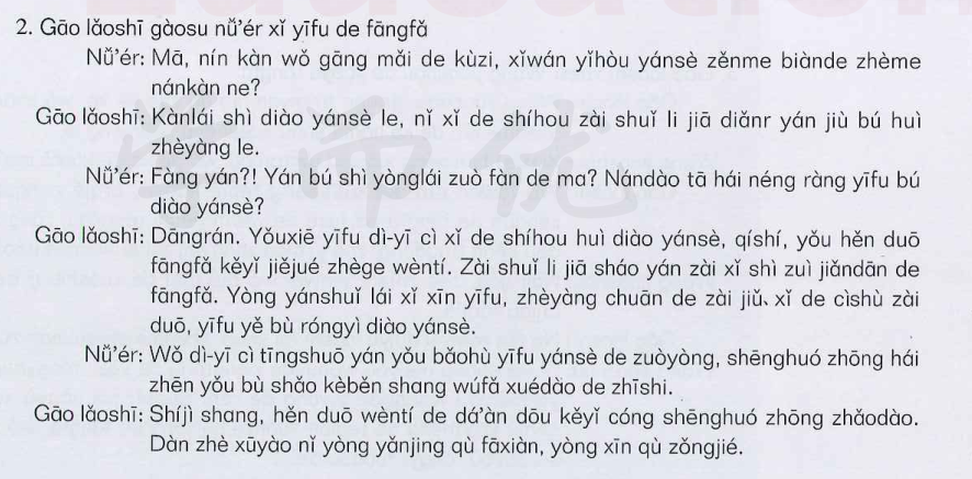 课文 2:高老师告诉女儿洗衣服的方法 (Cô giáo Cao chỉ con gái cách giặt đồ)