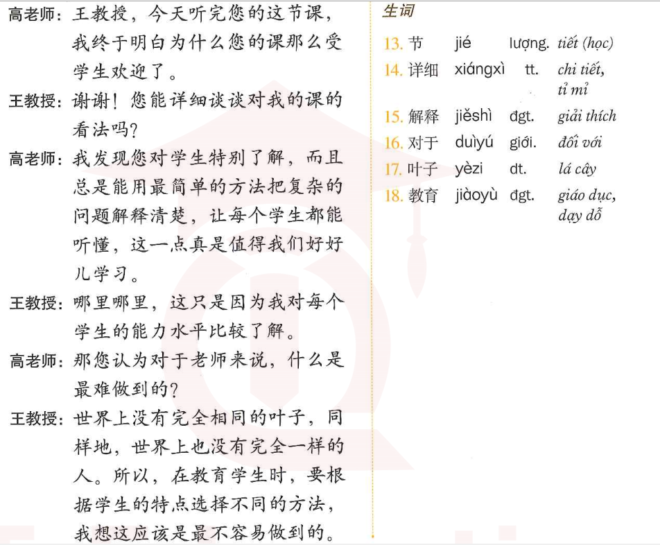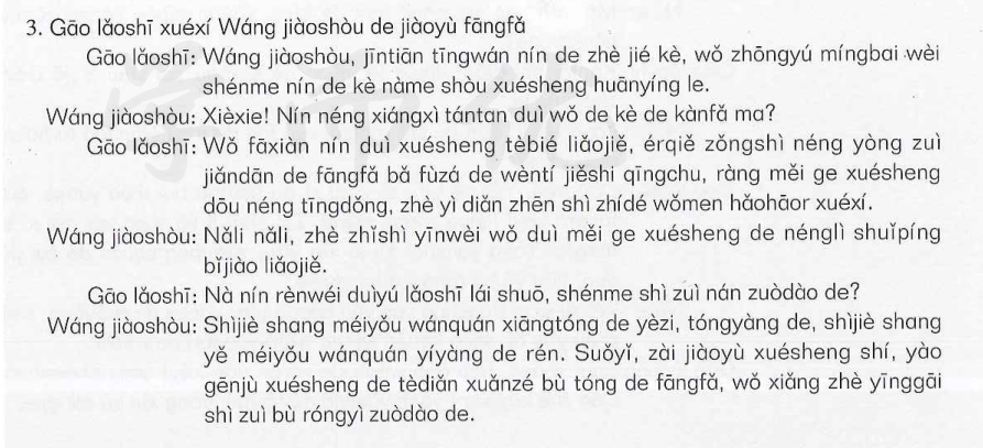 课文 3:高老师学习王教授的教育方法 (Cô giáo Cao tìm hiểu phương pháp dạy học của giáo sư Vương)