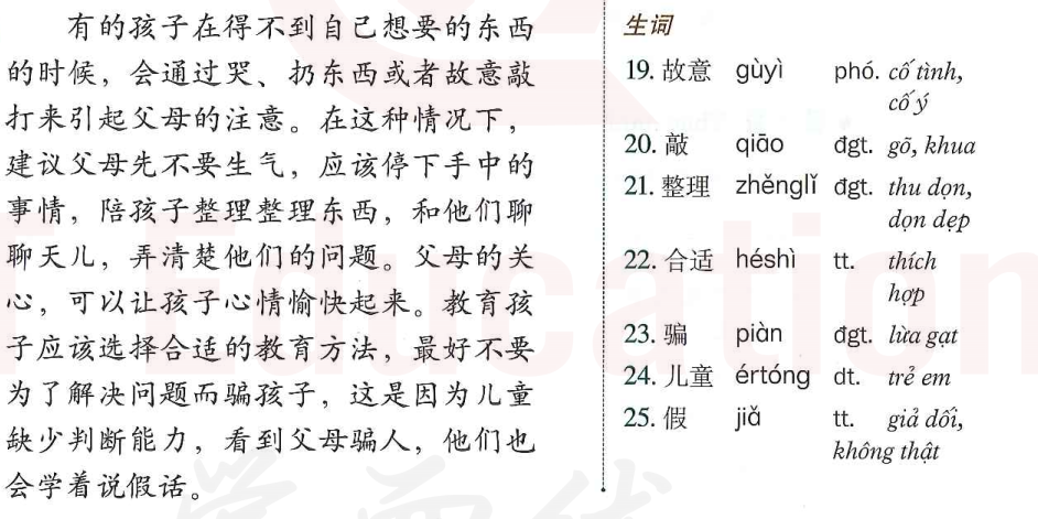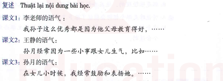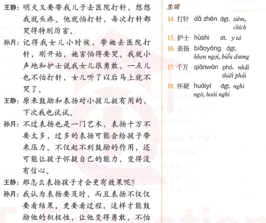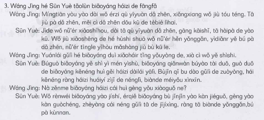 课文 3:王静和孙月讨论表扬孩子的方法 (Vương Tinh thảo luận với Tôn Nguyệt cách khen ngợi trẻ em)