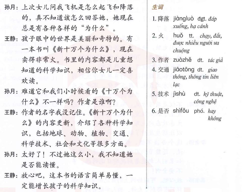 课文 1:王静给孙月推荐一本书 (Vương Tinh giới thiệu cho Tôn Lệ một quyển sách)