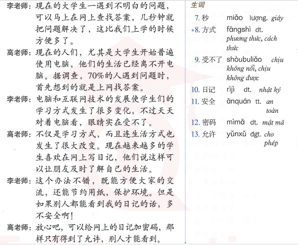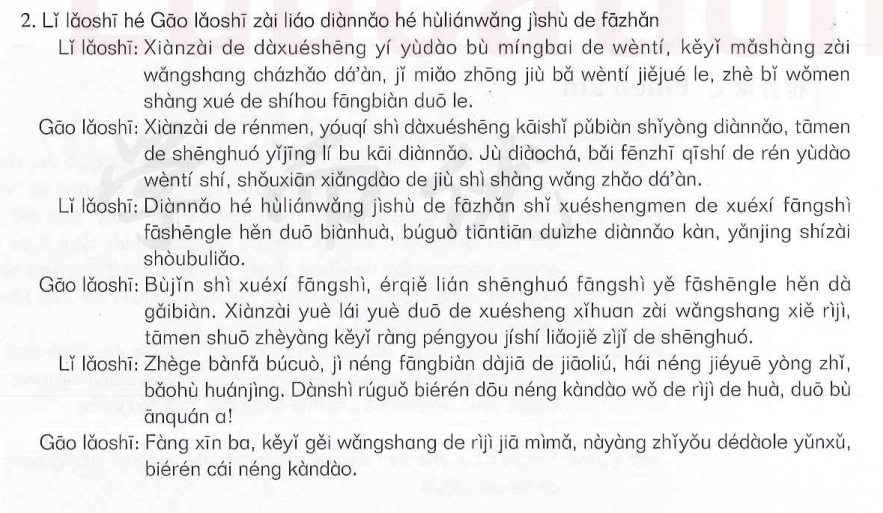 课文 2:李老师和高老师在聊电脑和互联网技术的发展 (Cô giáo Lý và Giáo sư Vương đang thảo luận về sự phát triển của khoa học công nghệ và mạng Internet)