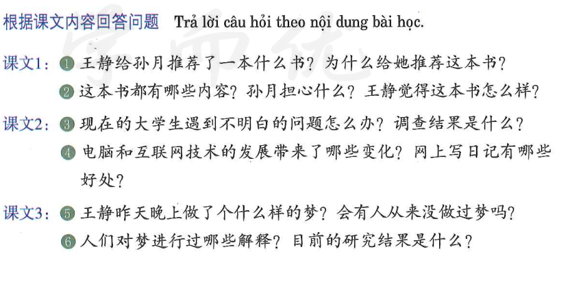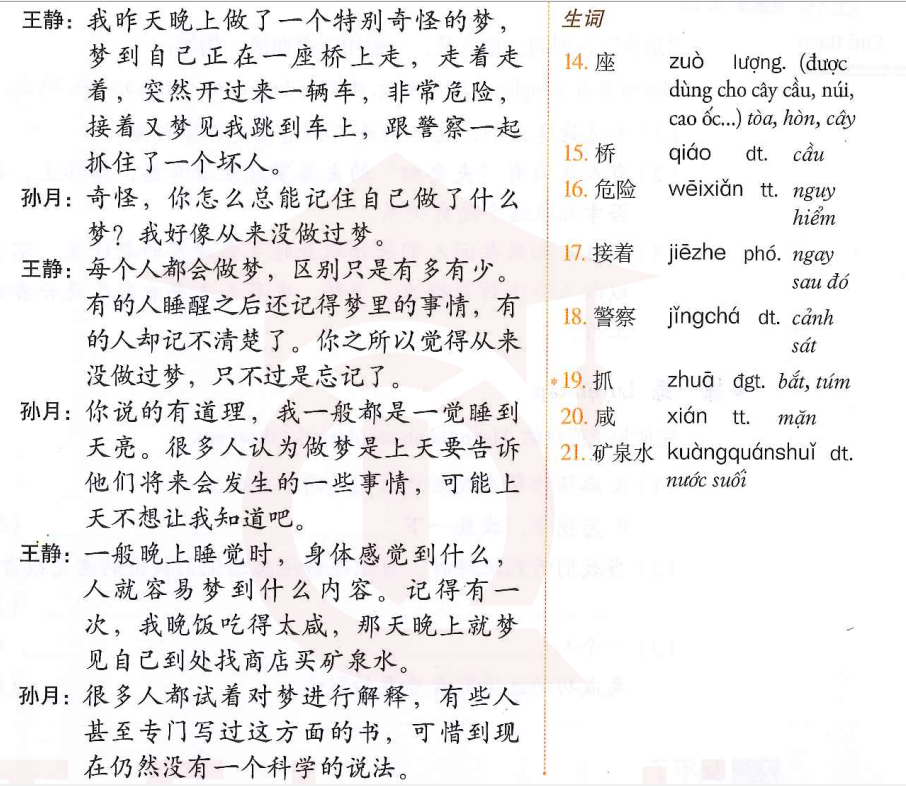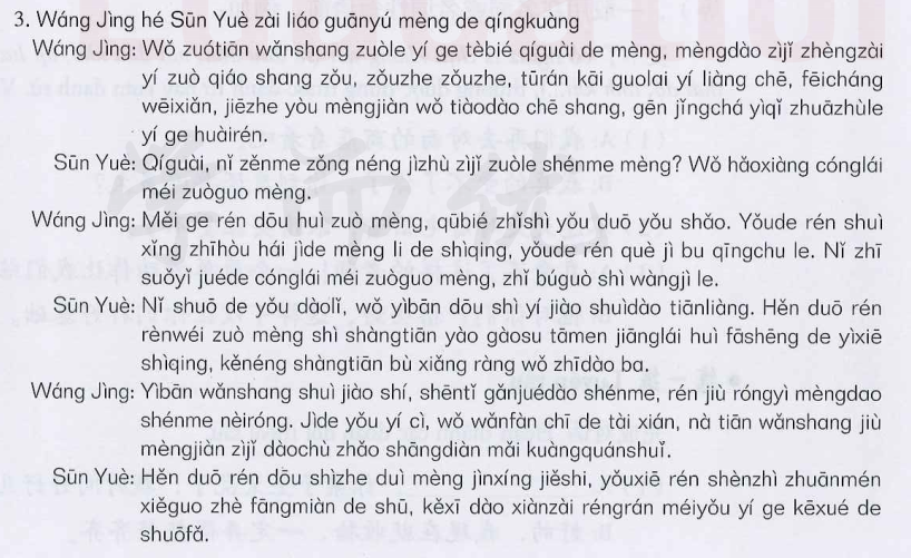 课文 3:王静和孙月在聊关于梦的情况(Vương Tinh thảo luận với Tôn Nguyệt về tình trạng của giấc)