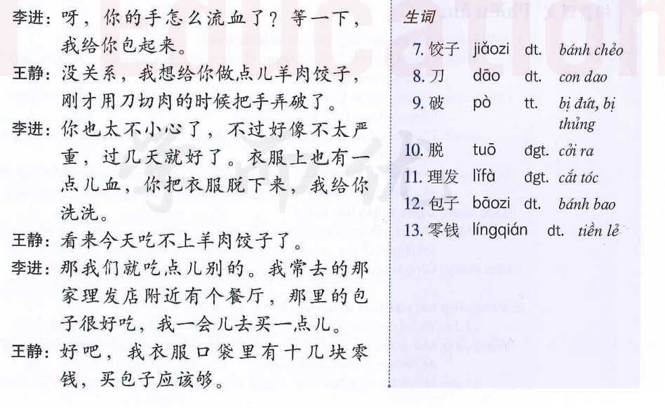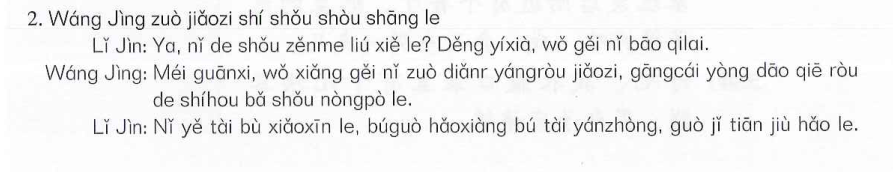课文 2:王静做饺子时手受伤了(Tay của Vương Tinh bị thương trong lúc làm bánh sủi cảo)