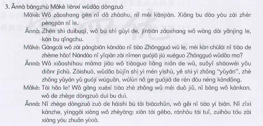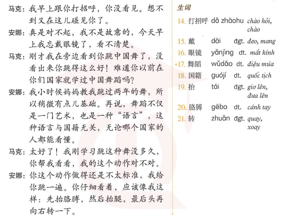 课文 3:安娜帮助马克练习舞蹈动作(Anna giúp Mark tập các vũ đạo múa)