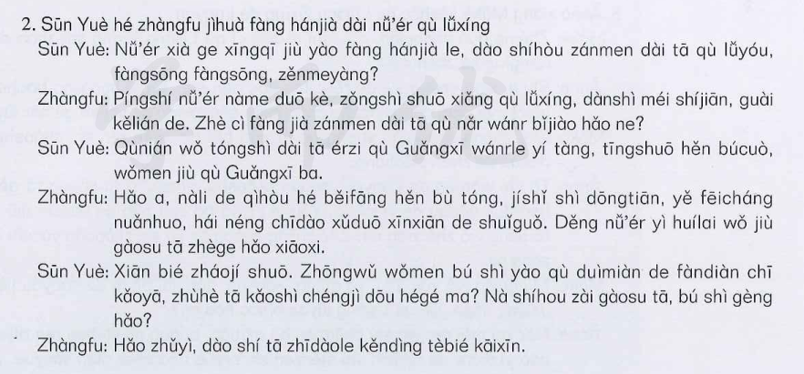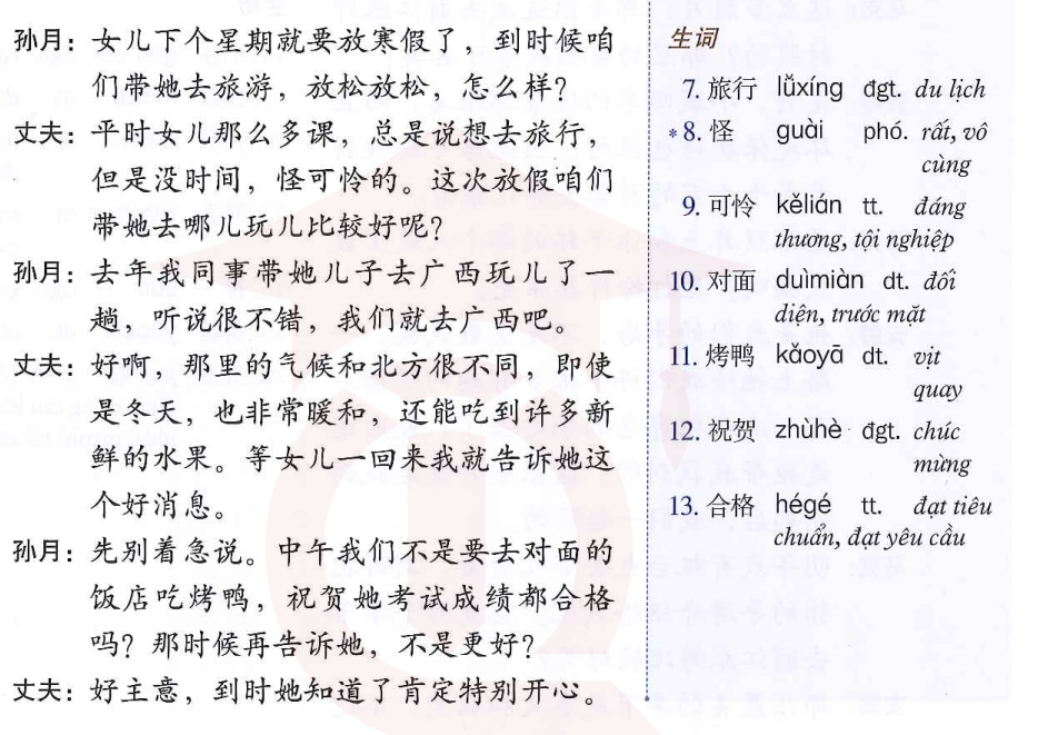 课文 2:孙月和丈夫计划放寒假带女儿去旅行(Tôn Nguyệt và chồng lên kế hoạch đưa con gái đi du lịch)